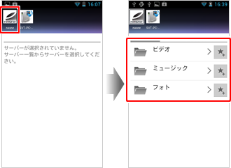 DLNAアプリが起動し、サーバー一覧にネットワークにつながっている機器が表示されます。