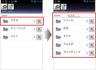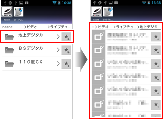 [nasne]をタップすると、"ナスネ"のフォルダー一覧が表示されます。