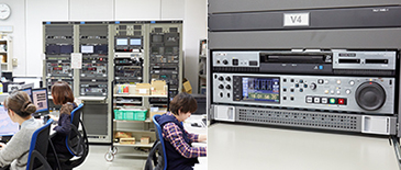 ENGセンター(写真・左)内に配備されたXDCAM Station XDS-PD1000(写真・右)。既存のベースバンド運用に加えて、プロフェッショナルディスクでのCMなどの持ち込み素材が増えてきていることに対応しました。
