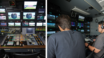 同社 技術局長 河上利文様に、今回の中継車システム更新の経緯や目的、更新コンセプトと主な仕様、運用状況などを伺いました。また、実際にJリーグ中継で運用中のスタジアムをお訪ねして、技術局 放送技術部長 高橋良也様に、収録・中継のオペレーションなどを紹介いただくとともに、運用の成果やシステムの評価などを伺いました。