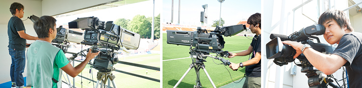 Jリーグ中継では、カメラシステムに6台のHDC-2000シリーズを導入し、HDC-1500 2台とあわせて8カメ仕様で、スタジアムの内外、ピッチの近く、オフサイドライン撮影用など各所に配置して、迫力と臨場感にあふれた競技実況映像を撮影しています。