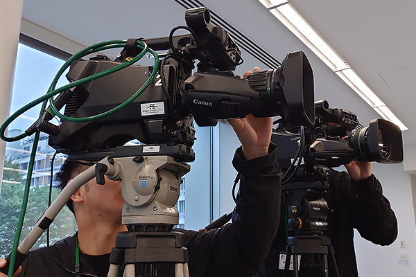 とあるシンポジウムでは、『FR7』2台と、引きの固定カメラ1台による丸一日の収録でした。会場の中に立って、丸一日カメラワークをするのは、スタッフの疲労も量り知れません。別室で座りながら、カメラオペレーションができる『FR7』は、労働環境面でも大きな魅力です。スイッチャー担当1人とカメラリモート担当1人のたった2人で丸一日の収録が行えました。当社スタジオでのeラーニング収録などではワンマン収録も行っています。