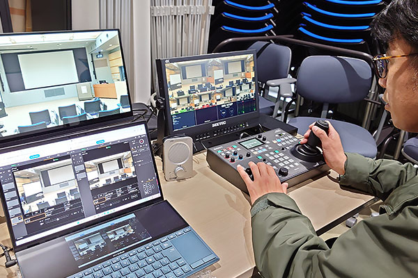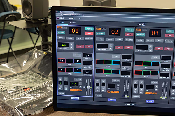 展示会などの訪問により、実機の確認を経て、これまでに、マルチフォーマットポータブルカメラ『HXC-FZ90』、カメラコントロールユニット『HXCU-FZ90』、リモートコントロールパネル『RCP-3501』のセットを3式導入しました。さらに、PTZタイプのCinema Line カメラ『FR7』を2式、リモートコントローラー『RM-IP500』1式を追加し、機器の統合監視や遠隔制御を目的としたカメラコントロールネットワークアダプター『CNA-2』とWeb RCPソフトウェア『HZC-RCPCN2』1式も導入しました。約1年をかけて段階的にシステムの増強を行ってきました。