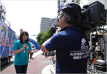 湘南ケーブルネットワーク株式会社様は、2013年3月、コミュニティーチャンネルのHDフォーマットにXDCAMを採用することで自主制作番組のファイルベース化によるハイビジョン放送を開始されました。併せて、中継/収録用のカメラシステムとしてデジタルマルチコアカメラHXC-D70とカメラアダプターCA-TX70、カメラコントロールユニットHXCU-100を3式導入され、2013年4月より本格運用を開始しました。