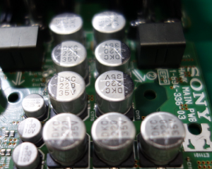 DSDをPSM変換、圧縮音源をハイレゾ並みにアップコンバートする「DSEE-HX」の信号処理をするDSPの電源にセラミックコンデンサの替わりに導電性高分子アルミ固体電解コンデンサを使用することでハイレゾ音源の特徴である空間表現がよりはっきりと再現します。