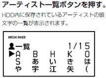 ボタンワンタッチでアーティストの頭文字を一覧表示!お探しのアーティストが簡単に見つかり、聴きたい曲が簡単に選べます。