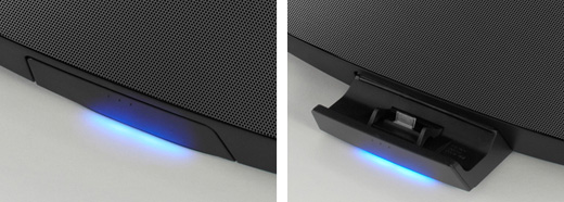 どこから見ても美しいデザイン、サイドをせり上げることで実現した浮遊感のある美しいフォルムが、リモコン操作に呼応してブルーに光る “ウォークマン”ドックランプと相まって、インテリア空間をスタイリッシュ&エモーショナルに演出します。