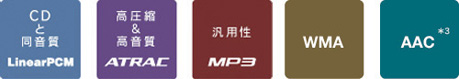 CDの音楽データを圧縮せずにそのままデジタル化するリニアPCM形式に対応。CDと同音質のままHDDへの録音を実現します。また、汎用性が高いMP3形式やATRAC形式での録音もできるので、幅広いリスニングスタイルを可能にします。