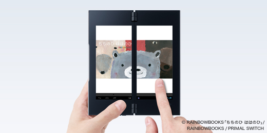 2つのディスプレイを折りたためば、コンパクトで持ち運びがスムーズ。片手でもラクに持てるので、電車の中での読書も快適です。縦持ちにして、指でページをめくりながら、紙の本のような感覚で読めます。