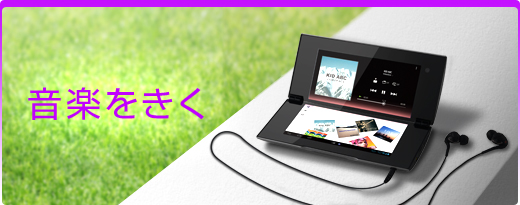 Sony Tabletなら、音楽の楽しみも広がります。「xLOUDテクノロジー」や「クリアフェーズテクノロジー」などのソニー独自の高音質技術により、クリアで伸びやかなサウンドを再現。お気に入りの音楽をいつも持ち歩いて、いい音で聴けます。