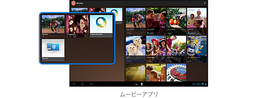映画を楽しみたいときは、ソニーオリジナルのメディアプレーヤー「ムービーアプリ」へ。ホーム上のアイコンから、いつでもすぐにアクセスできるので便利です。タイル状の見やすいインターフェースで、Xperia(TM) Tablet Sにストックしたコンテンツのほか、ブルーレイディスクレコーダーや「nasne(ナスネ)(TM)」のコンテンツの検索もスムーズ。さらに、ソニーのビデオ配信サービス、「Video Unlimited」(ビデオアンリミテッド)にアクセスしたり、ビデオコンテンツをワイヤレスおでかけ転送したり、テレビやPCにコンテンツをThrow(送信)することも可能。多彩な映画の楽しみが「ムービーアプリ」から広がります。