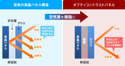 高コントラストで奥行き感があり、リアリティー豊かな映像を再現する「オプティコントラストパネル」を搭載。外光の映り込みも抑え、室内はもちろん、明るい屋外での視聴も快適です。さらに、IPS方式の採用により、広い視野角を確保。どんな角度からでも見やすく、みんなで一緒に映像を楽しめます。