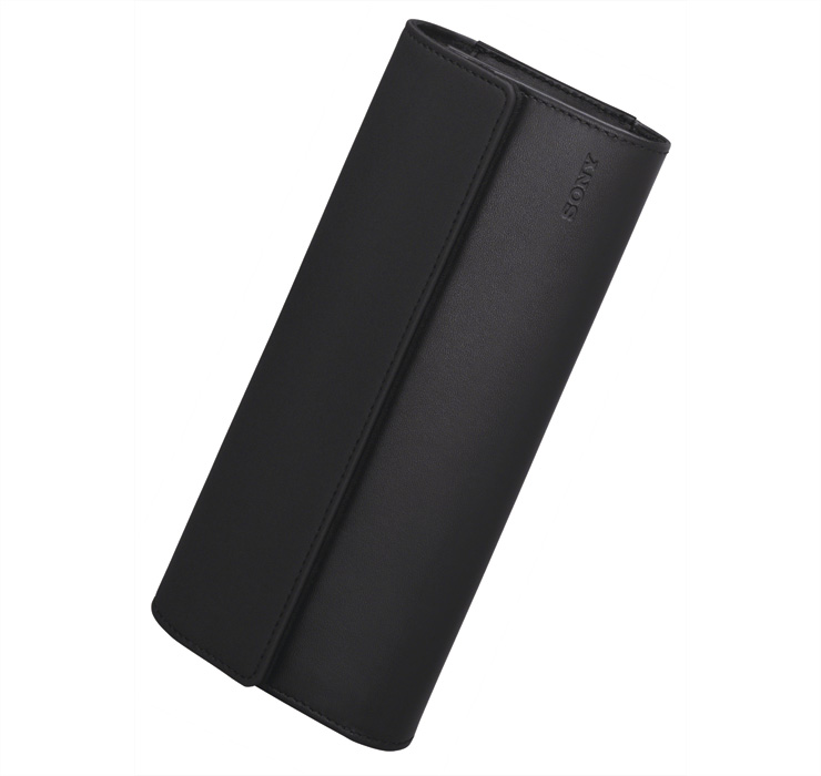 Pシリーズのデザインにマッチする、スタイリッシュな本革製キャリングケース。ケースのボディにはブラックの本革、フラップ部分にはポリウレタンの異素材を使い、アクセントをつけました。本体のデザインにぴったりで、かばんの中でかさばりません。