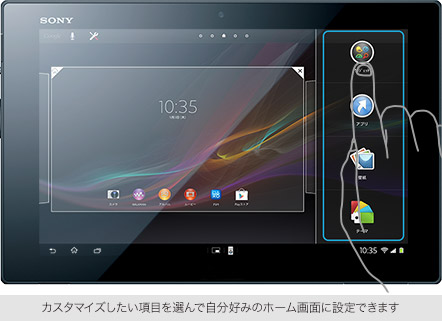Android 4.1に対応。スピーディーでスムーズなレスポンスと使いやすいユーザーインターフェースなどにより、Xperia™ Tablet Zが快適に使えます。