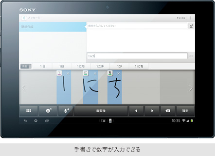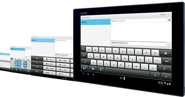 独自の文字入力アシスト機能を初搭載。オンライン辞書などの便利な機能はそのままに、Xperia™ Tablet Zに最適化したQWERTYキーや手書き漢字入力により、快適な文字入力を実現します。