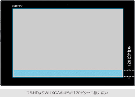 約10.1インチの大きなディスプレイは、Xperia™ Tablet史上初となる1920×1200ピクセルのWUXGAに対応。