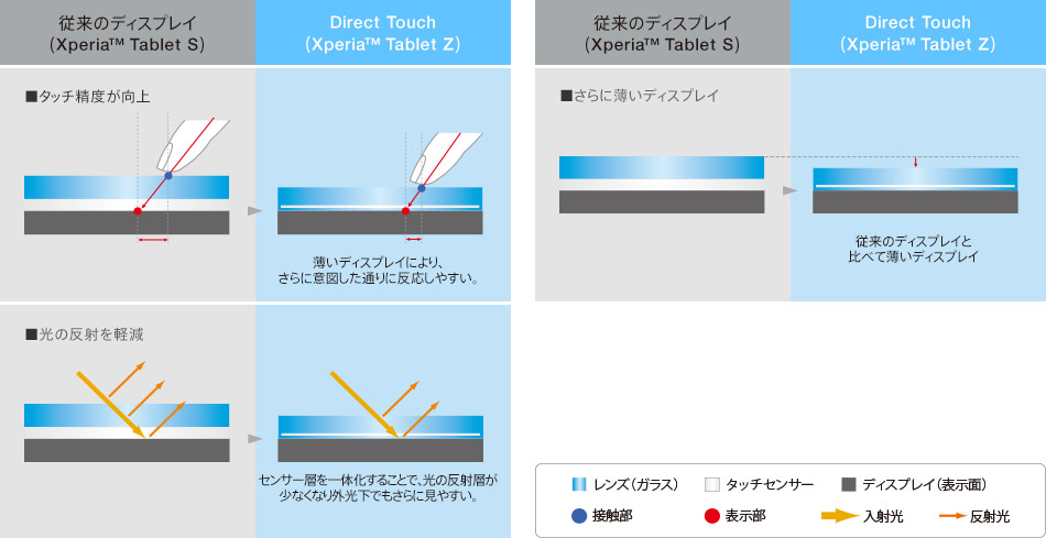 センサー層を一体化することでより薄いディスプレイを実現し、タッチ精度が向上。光の反射が少ないので外光下でも見やすく、屋外を移動中でも直感的に、確実に操作ができます。