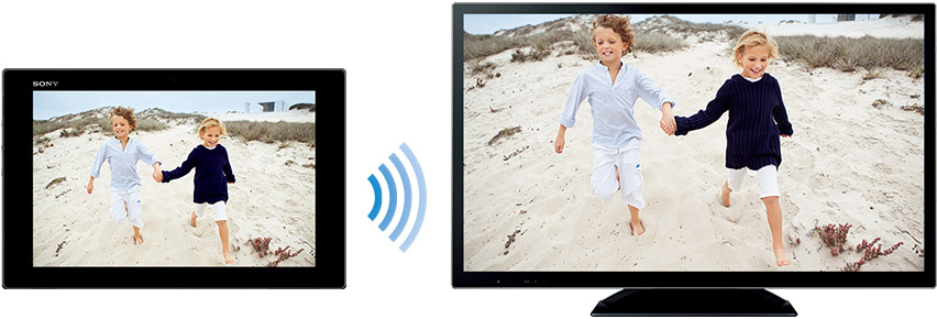 Xperia™ Tablet Zで再生している映像を、対応するテレビもしくはアクセサリーを介して、ワイヤレスで大画面に映し出すことができます。