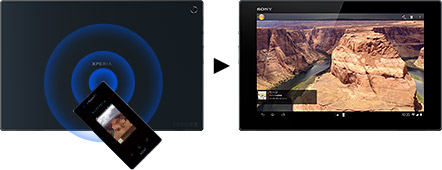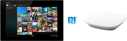 Xperia™ Tablet ZをかざすだけでNFC対応のXperia™スマートフォン(*)やヘッドホン、スピーカーなどの機器と自動でペアリング/接続し、データの転送や共有をするなど、簡単に機器連携を行うことができます。