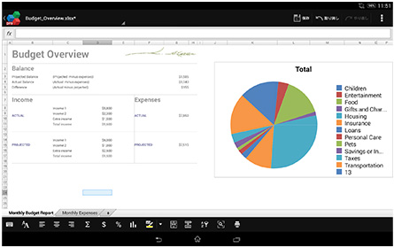 「OfficeSuite Pro」をプリインストール。MicrosoftのWordやExcel、PowerPointのファイル閲覧や編集、新規作成もできます。