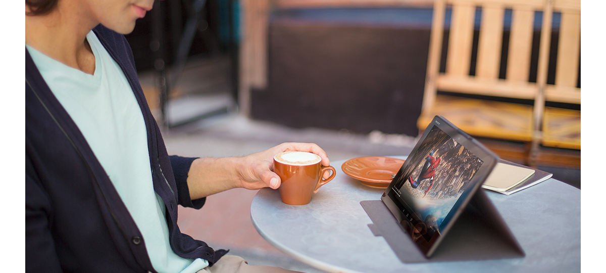 約10.1インチの大画面ながら、従来モデルより額ぶちの幅を左右約30%、上下約17%も削減。さらにバッテリーの小型化と液晶パネルの薄型化により、約6.1mmの薄さを実現しました。大画面の見やすさと、薄くて軽い機動力を兼ね備え、仕事、出張、旅行など、どこへ行くにも手放せません。さらにユニボディ構造を採用しているので、堅牢性もしっかり確保しています。