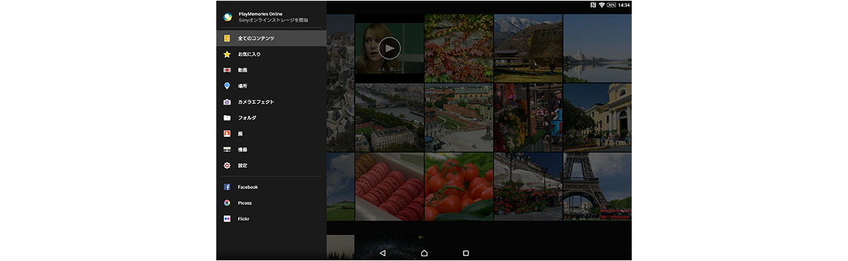 写真や動画の月別表示や地図上での撮影場所の表示ができ、ピンチ操作でコンテンツを素早く閲覧できる技術を搭載し、思い出の写真を快適に楽しめます。また、Facebookなどオンラインにアップされた画像をXperia(TM) Z4 Tabletのアルバムアプリケーションに同期でき、便利です。