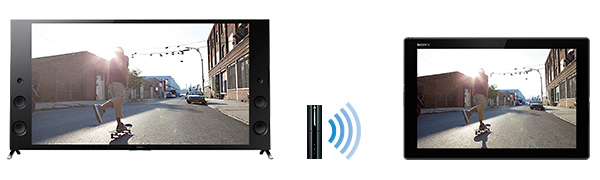 Xperia(TM) Z4 Tabletで再生している映像を、対応するテレビもしくはアクセサリーを介して、ワイヤレスで大画面に映し出すことができます。