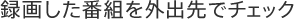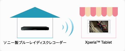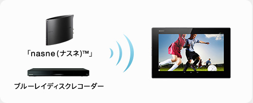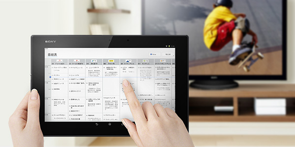 自宅のソニー製ブルーレイディスクレコーダー*と連携すれば、Xperia™ Tabletがどこでもテレビになります。録画や放送中の番組を外出先でも転送の手間をかけることなく、その場ですぐに視聴できます。海外旅行中に、日本のテレビ番組を楽しむことも可能。また、外出先からXperia™ Tabletを操作して録画予約も行えます。