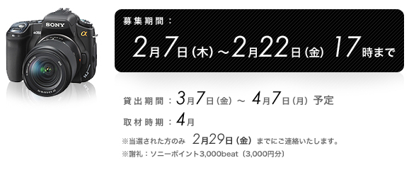 商品の販売や勧誘活動とは一切関係ございません。お貸しした“α350”はご返却いただきます。
