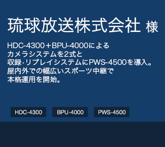 琉球放送株式会社様は、同社の主力業務の一つであるスポーツ中継・収録用に、新たにマルチフォーマットポータブルカメラHDC-4300、ベースバンドプロセッサーユニットBPU-4000によるカメラシステムを2式と、リプレイシステムにマルチポートAVストレージユニットPWS-4500を導入され、2016年3月より幅広いスポーツ中継に本格運用を開始されました。