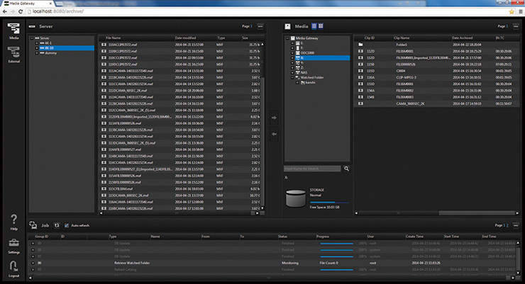 PWS-4500内の映像クリップをオプティカルディスク・アーカイブやUSB HDDなど外部メディアへ転送できます。また、外部メディアからPWS-4500への素材リトリーブも可能です。ノンリニアサーバーへの転送、ウォッチフォルダーからの自動取り込みなど、さまざまな用途に対応しています。