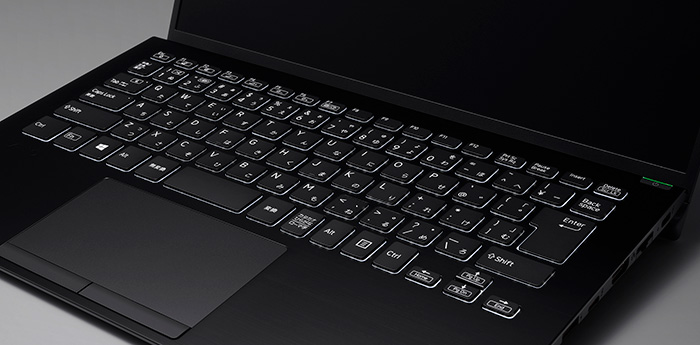 薄暗い場所や、飛行機の座席などでも迷わずタイピングできるキーボードバックライトを標準搭載しています。