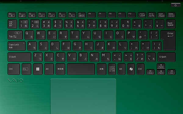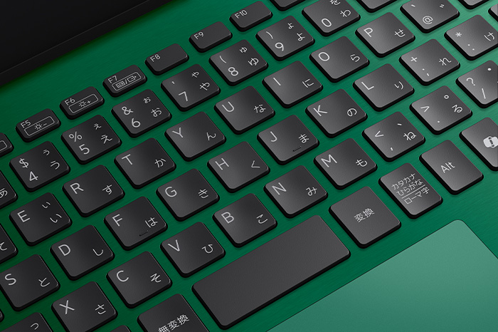 ブラックのフラットアルミパームレストは、見た目だけではなく、手触りにもこだわりました。高級感を高める効果に加え、筐体の剛性アップにも寄与しています。
