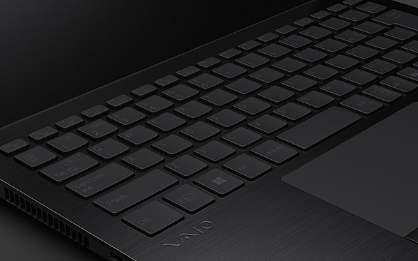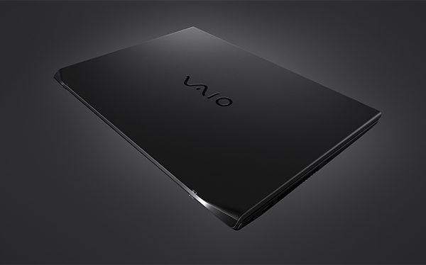 天面のVAIOロゴを黒く染め上げました。艶やかに光るブラックロゴの輝きが、マットな質感のブラックボディの中で鮮烈に浮かび上がります。
