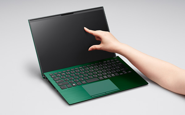 指先で直観的なタッチ操作が可能なタッチパネルディスプレイ搭載モデルもご用意。ディスプレイの表面処理はアンチグレアタイプで、照明などの映り込みを低減してくれます。さらに解像度も2560×1600ピクセルになり、写真データなどをよりきめ細やかに表示できるようになりました。