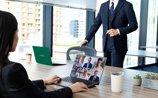 PCを使う場所の多様化が進む中、離れた場所でも快適にコミュニケーションできる機能を用意しました。VAIO独自の技術とアイデアで、ビデオチャットやリモートワークの悩み事を解決します。