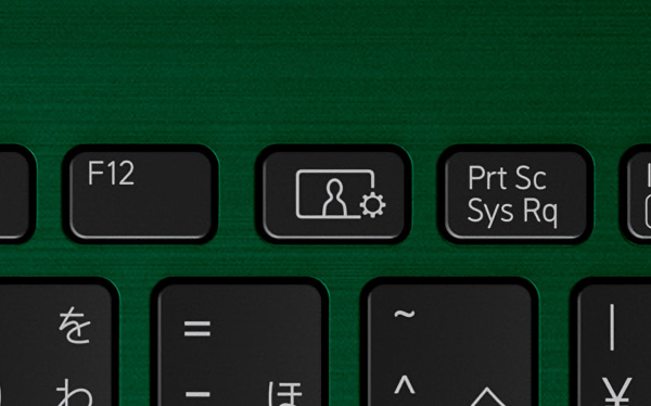 黒色のキーキャップ上に刻印される文字も黒色にした、隠し刻印キーボード(日本語/英字)*を選択可能。刻印の存在感を抑えることで全体的な統一感を高めました。バックライト点灯時には刻印を光が透過し、うっすらと光ります。
