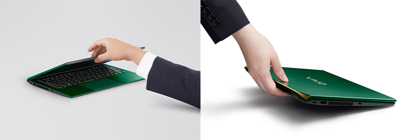 本質を追求したがゆえの美しさをさらに引き立てる勝色の輝き。VAIOが思い描く理想のデザインを実現すべく細部に至るまで妥協なく作り込みました。