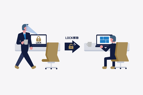 PCの前に座ると人感センサーがユーザーを検知して自動で顔認証を実行。PCに一切触れることなくログオンが完了します。