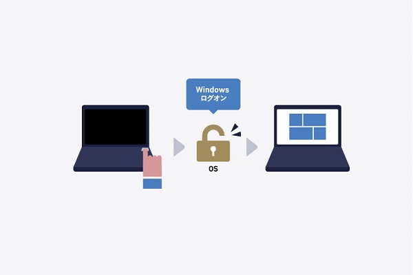 電源ボタンを押すと同時に指紋認証が行われ、パスワードを入力することなくログオンできます。