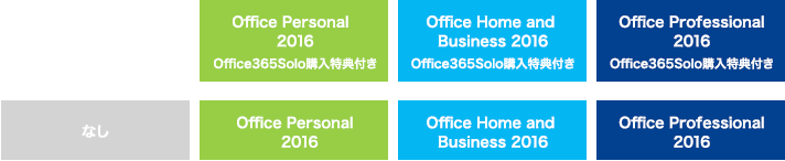 Office2016(Office365Solo購入特典付き)またはOffice 2016から選択可能です。