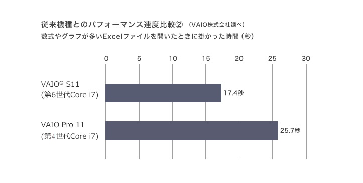 また、VAIO Zで培った放熱設計を投入することでパソコン本体の内部温度が上がりづらくなりました。これにより、プロセッサーが内部温度の上昇を検知して低速モードに切り替わってしまうのが起こりにくい設計を実現。ただ速いだけではなく、その速さが持続し続けることを目指しました。