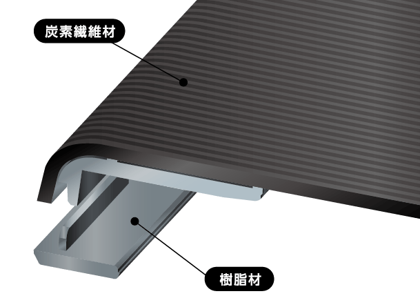 天板からディスプレイ両側面まで覆ったカーボン素材が剛性向上と軽量化の両立に貢献しています。
