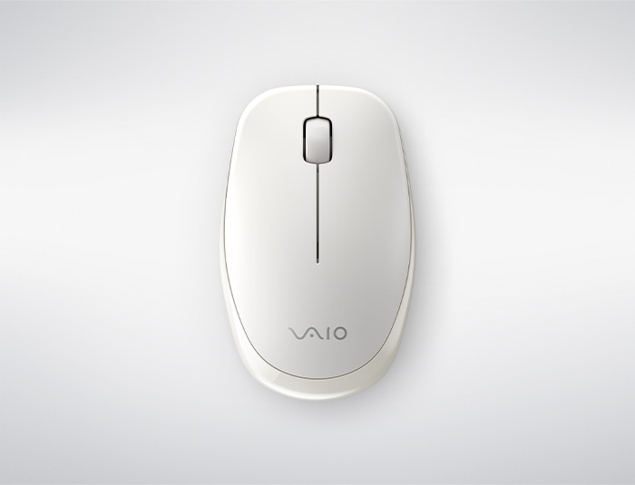 VAIO本体のデザインに合わせたワイヤレスマウス*を用意。手になじみながらも携行しやすい形状です。クリックボタンは静かな場所でも安心してお使いいただける静音仕様で、作業がより快適になります。