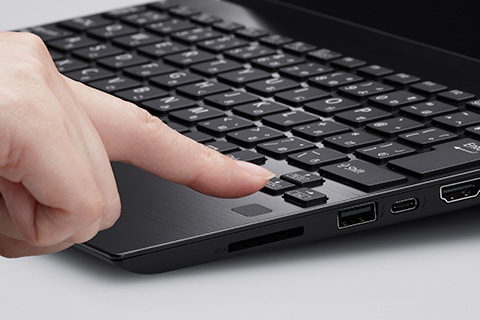 VAIO SX14は、Windows Hello対応の生体認証方式を最大2種類から設定可能。センサー部に指を置くだけの指紋認証、内蔵カメラでユーザーの顔を自動認識する顔認証の2つの方法で瞬時にログインできます(指紋認証はスリープ状態からの復帰にも対応*)。ふだんは顔認証で素早く、マスクをしているときなどは指紋認証でパスワード入力をせずにログインできるので、パスワードを複雑で強固な文字列にしても面倒なく安全・快適に利用できます。