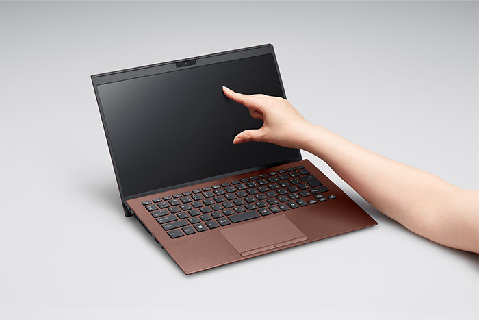 VAIO SX14はタッチパネルディスプレイを選択可能。スマートフォンのように画面上のボタンを押したり、フリック操作でスクロールさせたり、ピンチ操作で拡大縮小させたり、直観的に操作できます。別売のデジタイザースタイラス(ペン)を利用すれば、文字や絵など、より細かな書き込みが可能です。