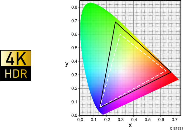 * HDR対応コンテンツのみ。本液晶パネルのバックライトはHDR機能有効時、低消費電力とコントラストの向上を図るため、画面の基調色に応じて画面全体の輝度を自動調整します。