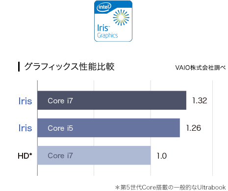 VAIO Zは外付けグラフィックス並の性能を発揮するインテル® Iris™ グラフィクスを内蔵。動画編集など負荷のかかる作業をはじめ、さまざまなシーンで快適に使えます。