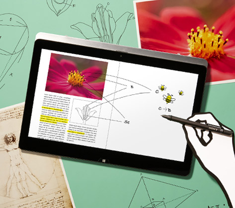 授業ノートを作成 - ペンを使って選択すれば、テキストだけでなく画像も簡単にクリップできるVAIOは、勉強にも役立ちます。フラットな画面はノート感覚でメモ書きができる上、間違えた箇所もきれいに消去が可能。質の高い授業ノートが作成できます。