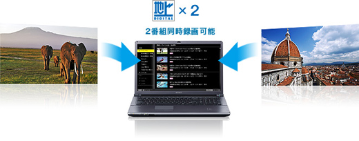 地上デジタルダブルチューナーとオリジナルソフトウェア「Giga Pocket Digital」を搭載。ハイビジョン番組の同時録画だけでなく、キーワード登録による「おまかせ・まる録」で、気になる番組や思わぬ拾いものの番組をどんどん録画。テレビの楽しみ方を変えていきます。